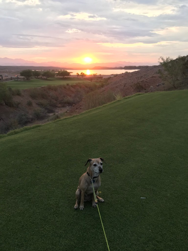 dining room and front porch; Brindy on our morning walk; owl on balcony