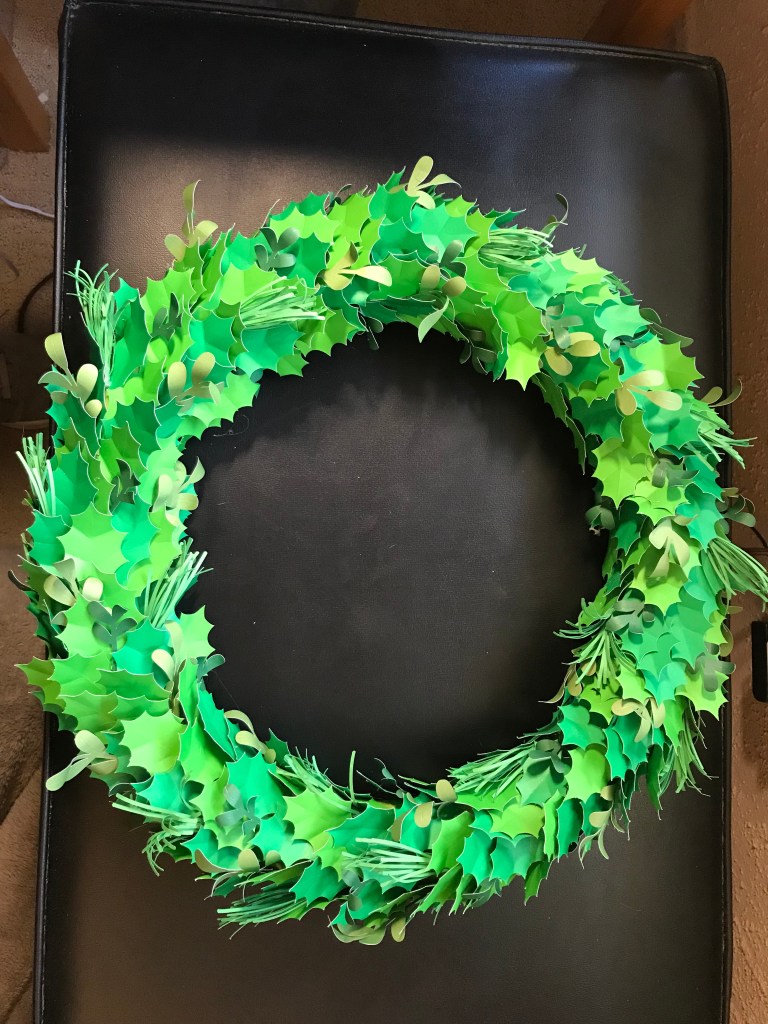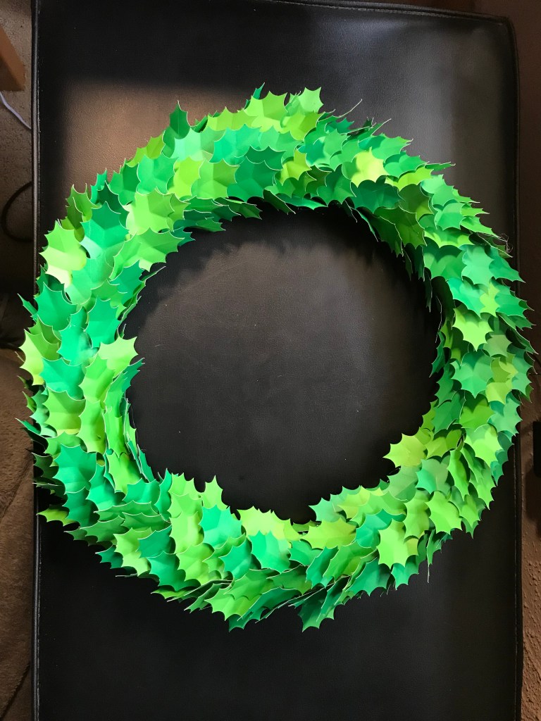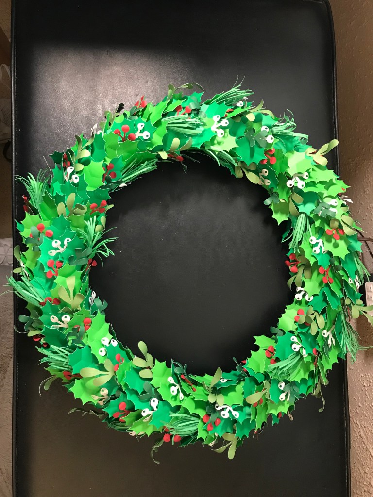 I was so pleased with the way those turned out I decided to make my first wreath. I bought a foam form and some ribbon to cover it, picked out my paper colors, and set up my cutting machine.