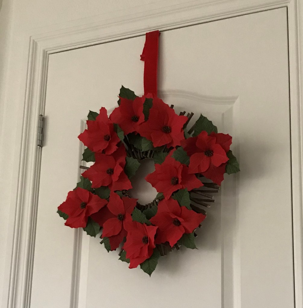 (I cut crepe paper like that used in the poinsettias by hand, but I have a Cricut cutting machine that handles regular paper.)
