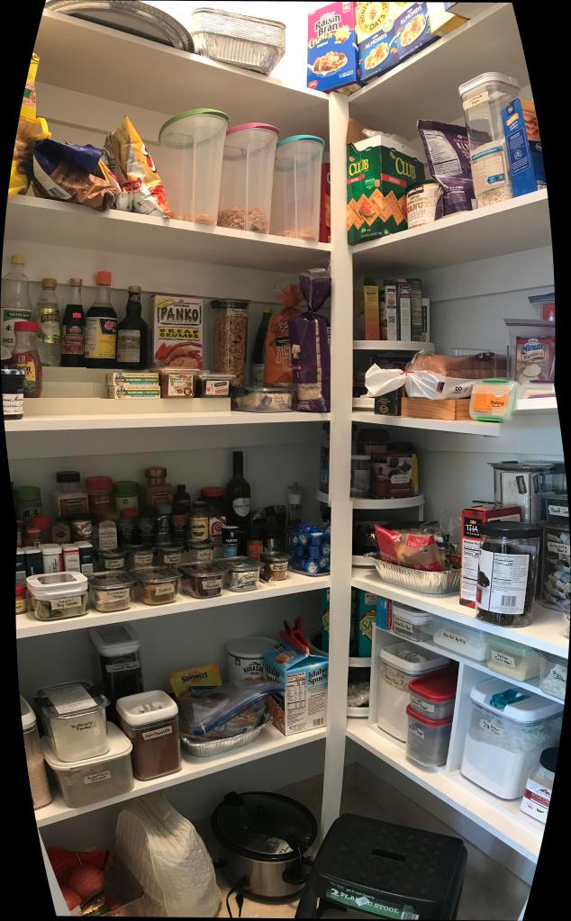 With the cans and the microwave moved out of the panty, I now have some breathing room. I wish I had thought to take a “before” picture, but you can try to imagine having all those cans and a microwave on one of the shelves. Here it is today: