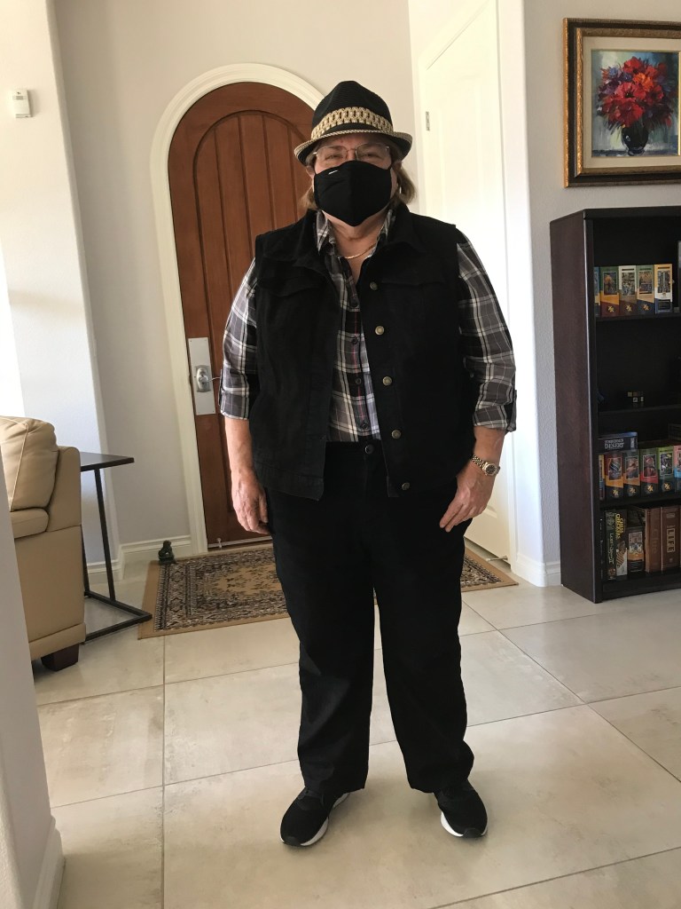 Look! A new mask! And a lovely one it is in basic black. Suppose I should have my boots on to complete the look; maybe next time.
