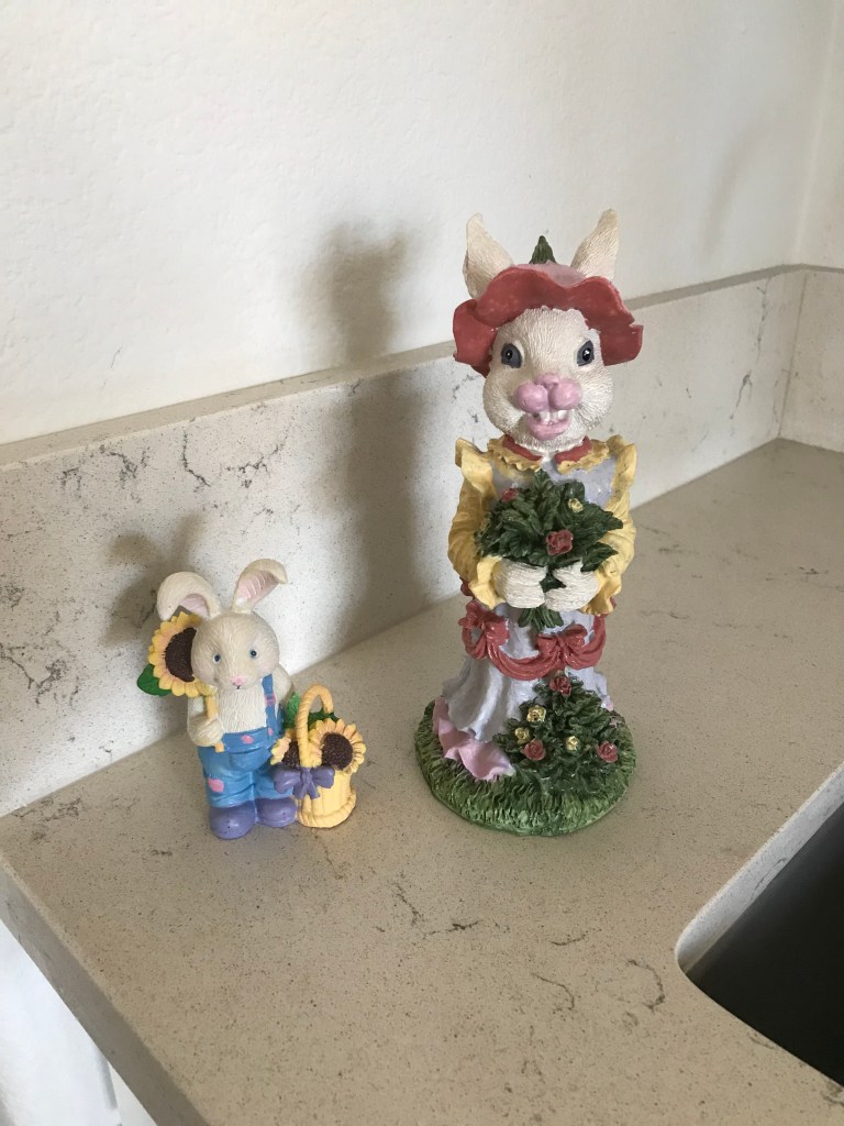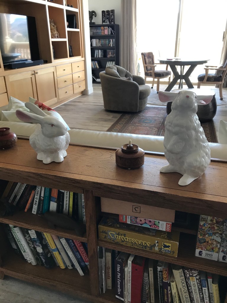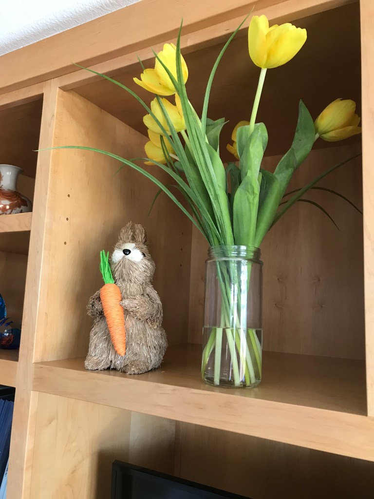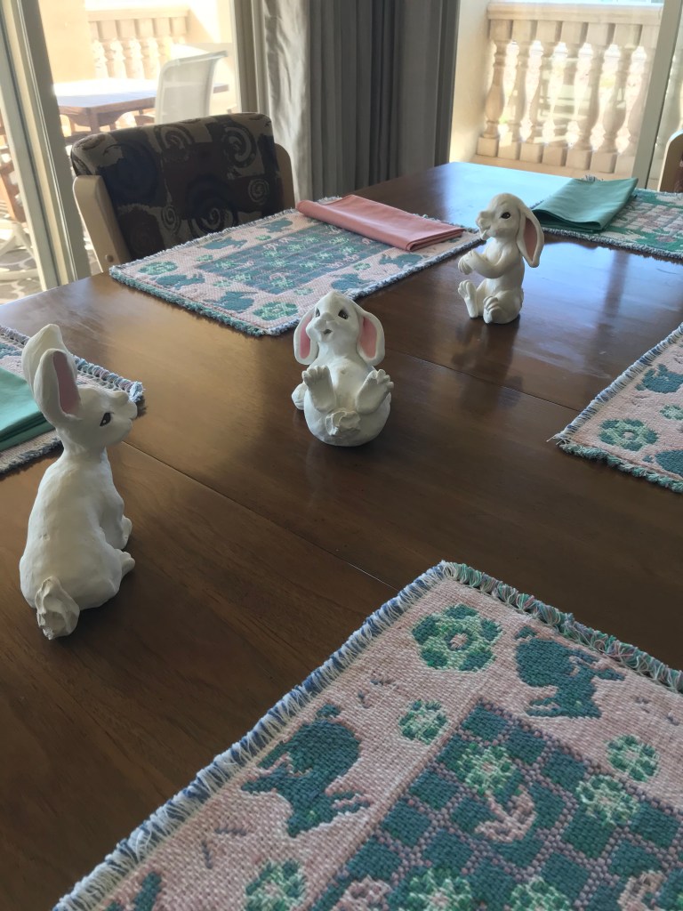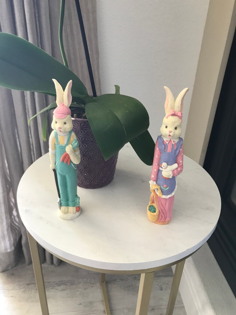 We do not really celebrate Easter in my household; we do celebrate the Easter Bunny, however. Here are pics of the decorations that went up yesterday: