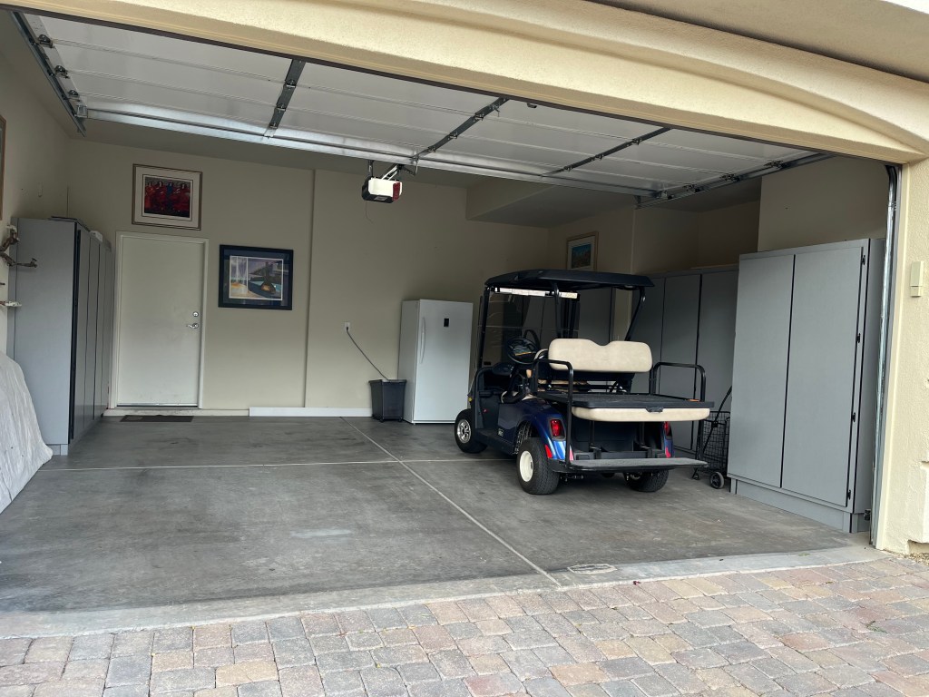 Although my garage has never been particularly messy and certainly not dirty, I did have a lot of things lined up along the walls as there were no storage cabinets. Finally got tired of looking at all that stuff and had some cabinets built in. Wish I had thought to take a “before” picture, but you can see the results in the “after” picture. Now I just need to rearrange and rehang the pictures and paintings I had up. I love having everything tucked away.