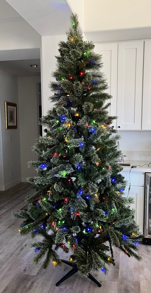 Mom and I have been looking at photographs from my childhood days and every year there were pictures of big Christmas trees. It was one splurge we made on a regular basis. I think that’s what led mom to say that it would be nice to have a big tree this year; we haven’t had a full size one in a long time.