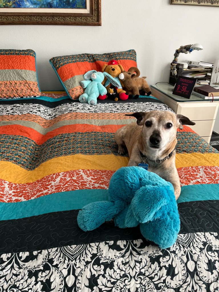Brindy Says “Hello” July 25, 2022tuplesandattributes All her toys are turquoise, so she initially thought mom’s rabbit in the background was fair game. Being the good dog she is, she has left it alone after she was told “NO” when she started chewing on its foot. Share this: Click to share on X (Opens in new window) X Click to share on Facebook (Opens in new window) Facebook Like Loading... Related