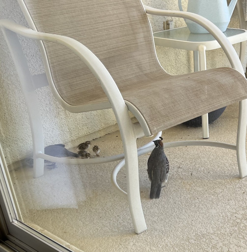 Quail August 4, 2022tuplesandattributes Here’s another “spot the animal” picture: A little easier to find than the coyotes in the earlier photos. Here is a closer look at some taken from my friend’s patio downstairs from me: Haven’t seen chicks this late in the year before. Share this: Click to share on X (Opens in new window) X Click to share on Facebook (Opens in new window) Facebook Like Loading... Related