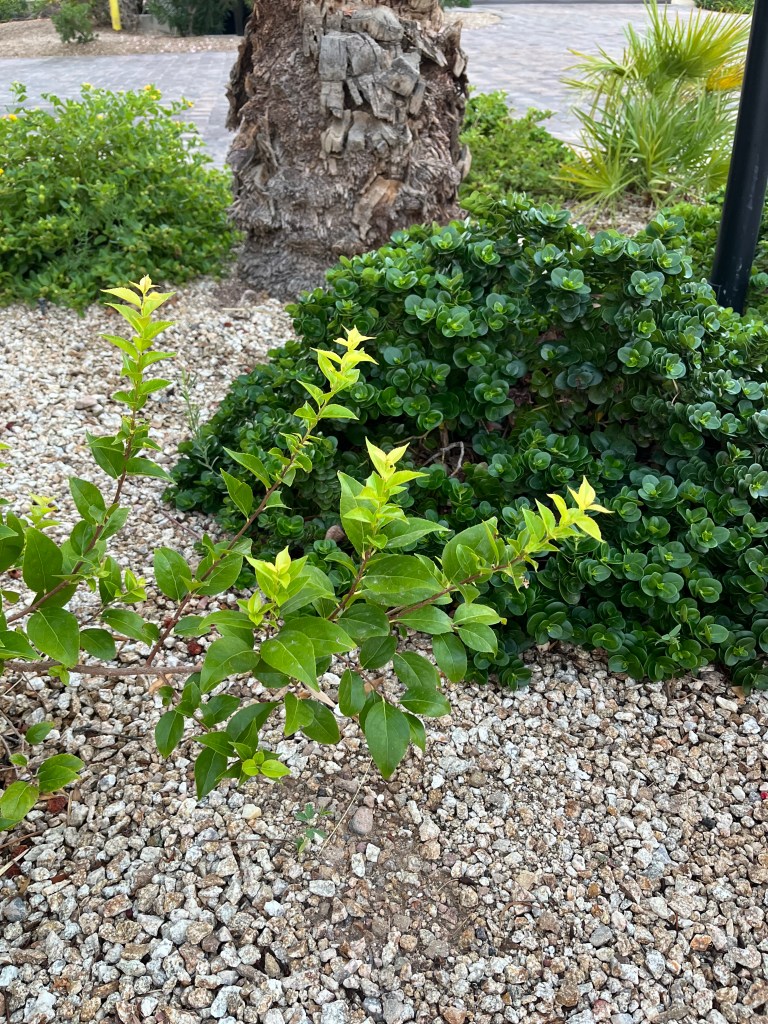 We use drip irrigation on all the plantings abound the condos I live in. It’s enough to keep the plants alive, but they don’t necessarily thrive. Since the monsoons have hit, though, the bushes have really perked up. I swear there is a new set of leaves every morning when I go out.