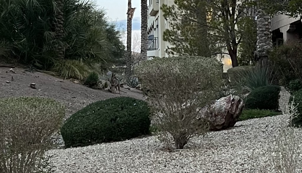 Unless they move, coyotes blend into the scenery incredibly well. These were taken right outside my door when I took Brindy out for her walk yesterday morning. We did not stay out long.
