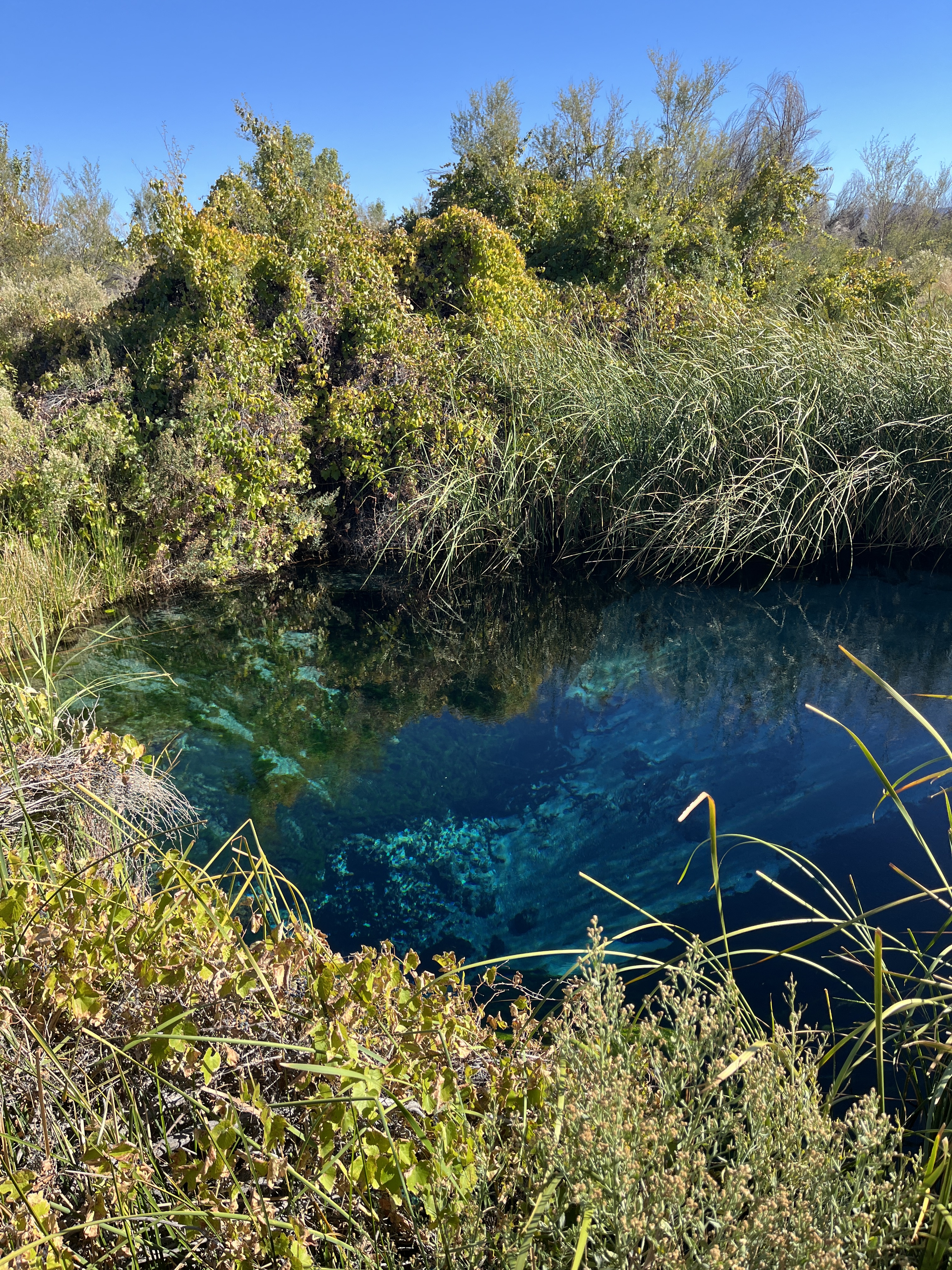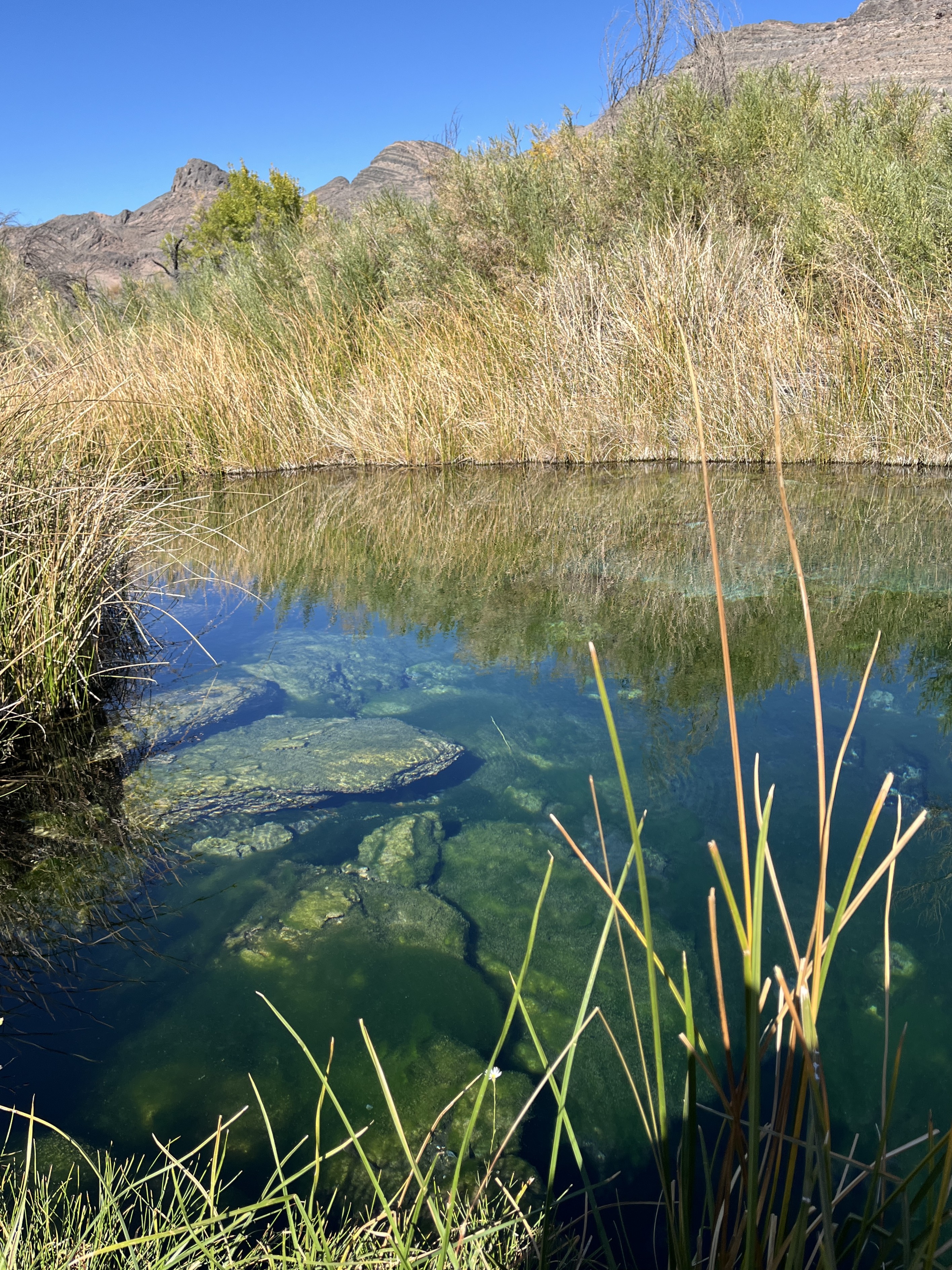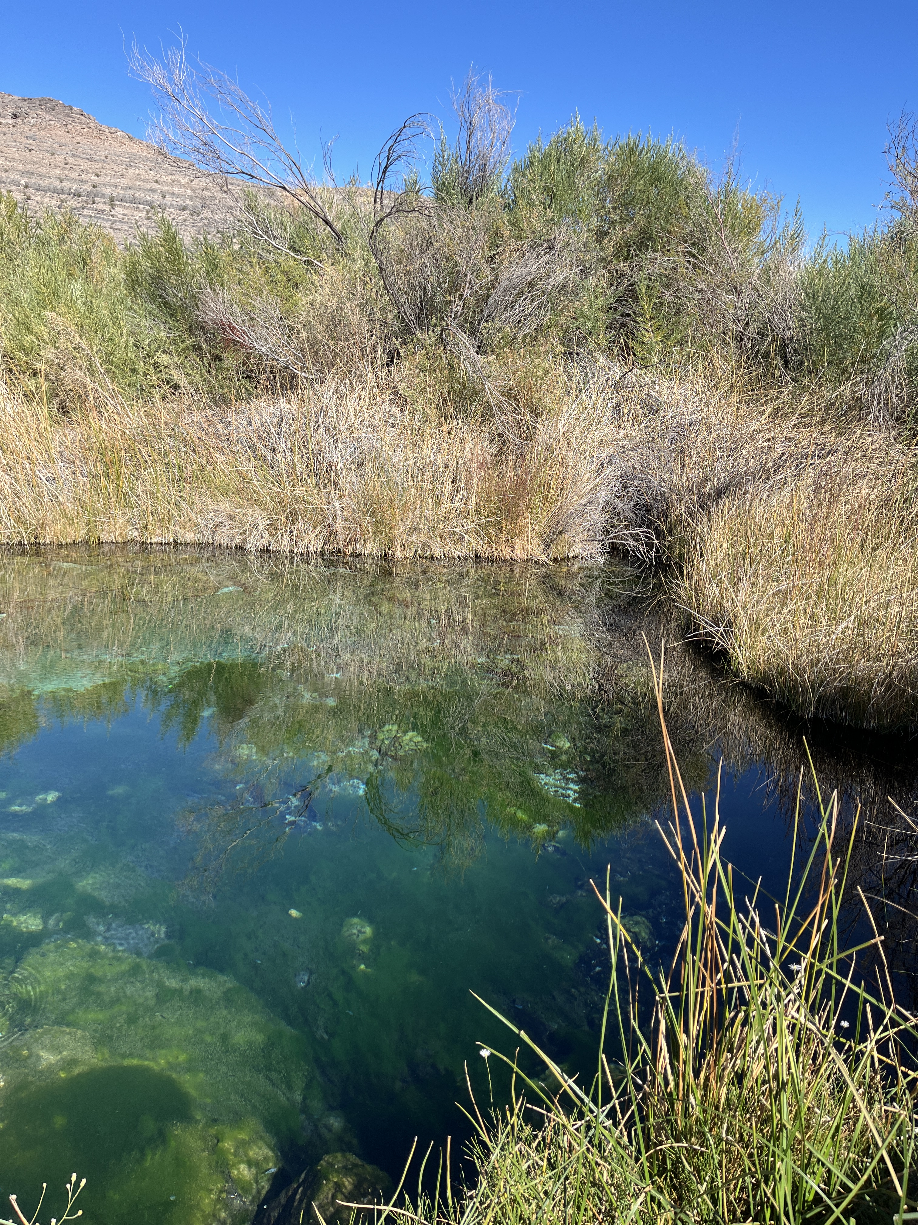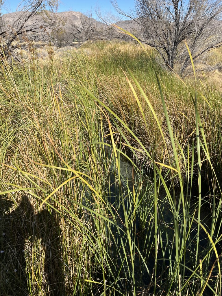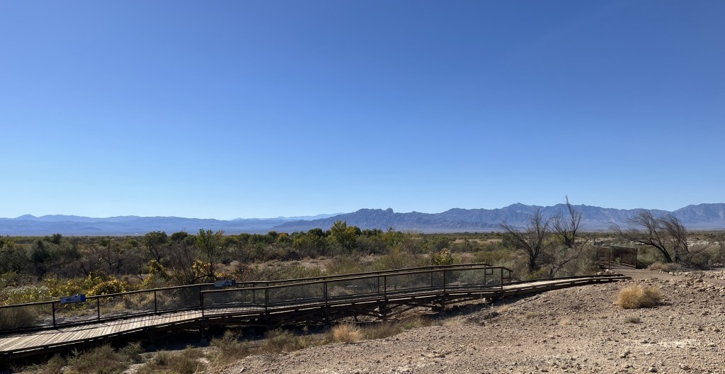 Next stop was Ash Meadows National Wildlife Refuge (https://www.fws.gov/refuge/ash-meadows). Thanks to our dysfunctional government, the visitor center was closed, but the trails (and bathrooms) were still open. Ash Meadows is the largest remining oasis in the Mojave Desert, but it’s hard to realize that because there is not a lot of open water. Here are typical landscapes: