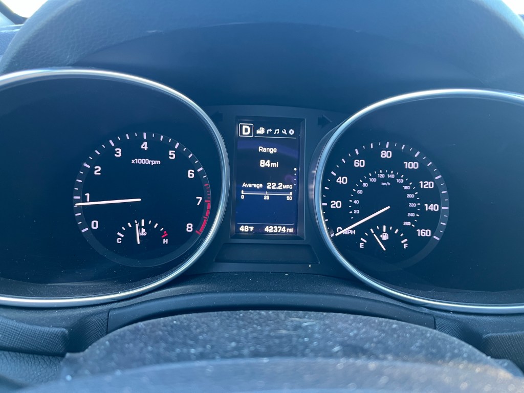 Here, for example, is the speedometer in my Hyundai Santa Fe Sport: