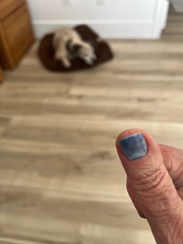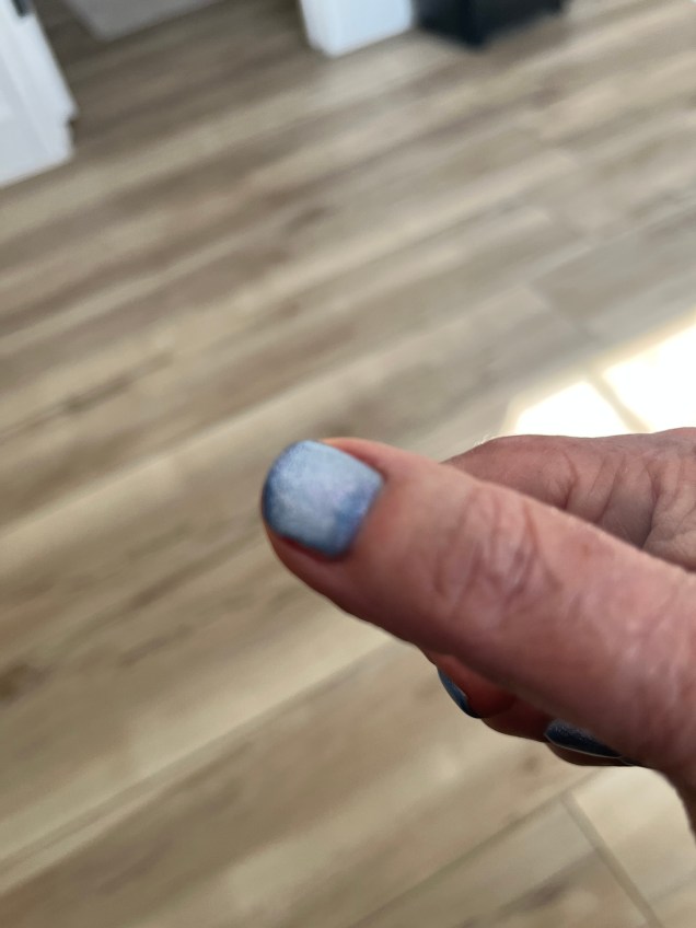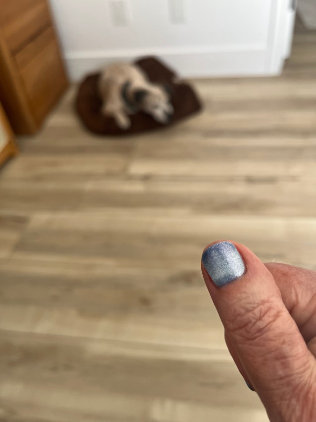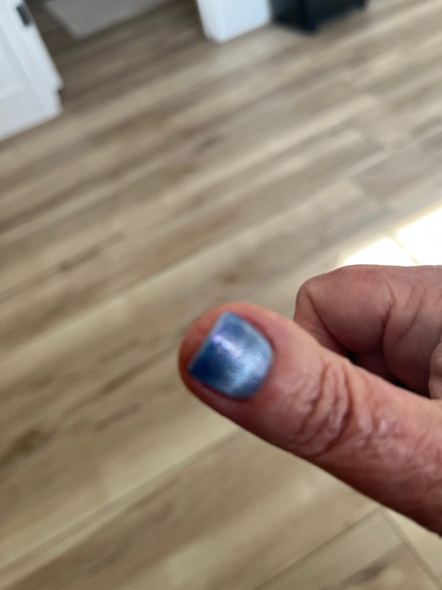 My manicurist asked me if I wanted to try “cat’s eye” nail polish, and I went for it. We didn’t do the traditional cat’s eye, but I’m very happy with the results.