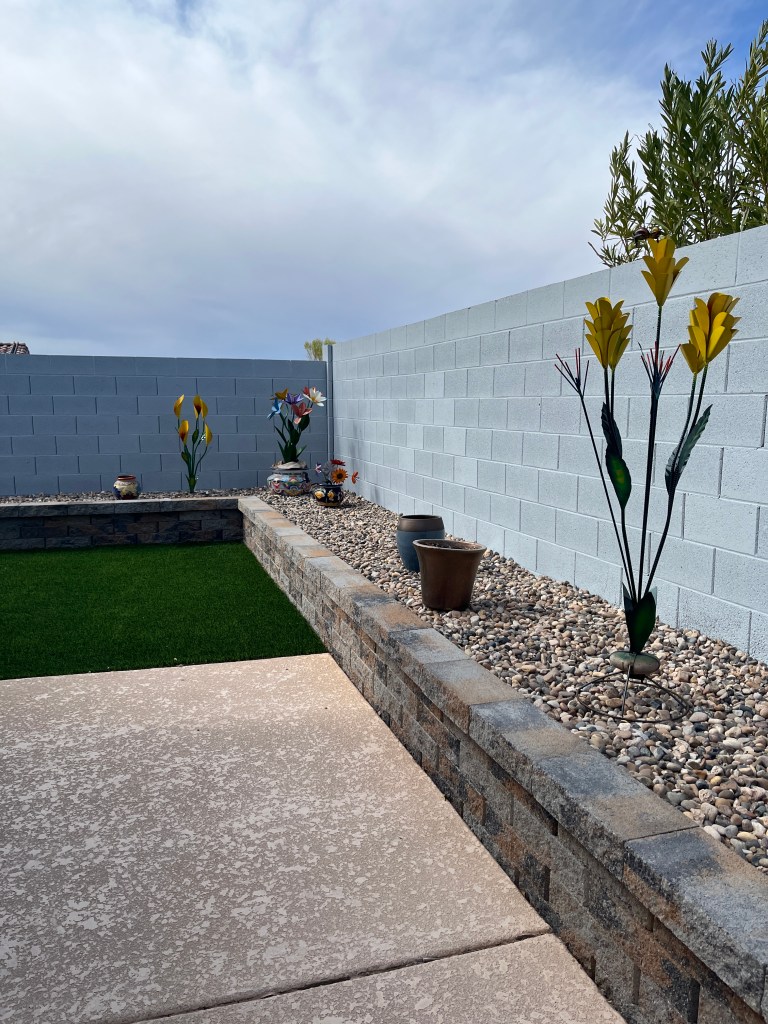 Now that the backyard landscaping is done, I have started to add decorations and color. More to come!