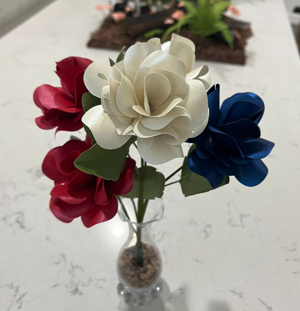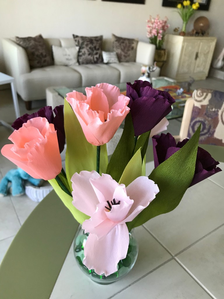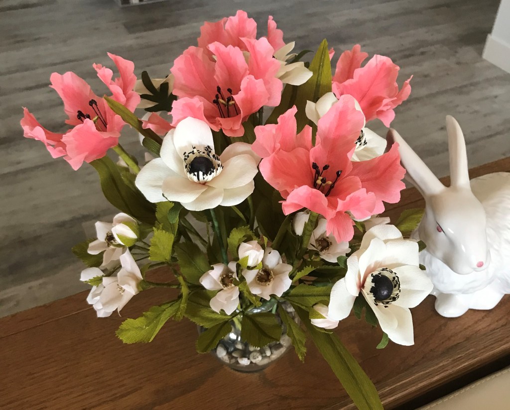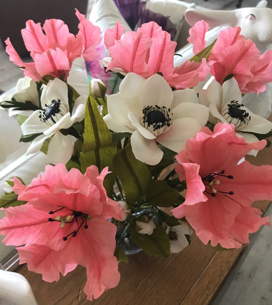 Here are a few of my flowers. I’ve made more, but I seem to have forgotten to take pictures of them!
