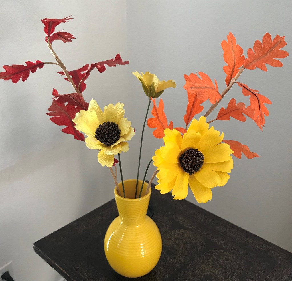 Fall leaves and daisies. Crepe paper.