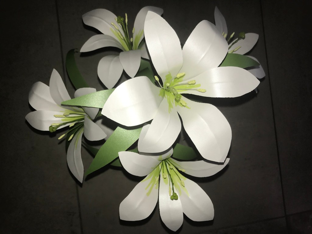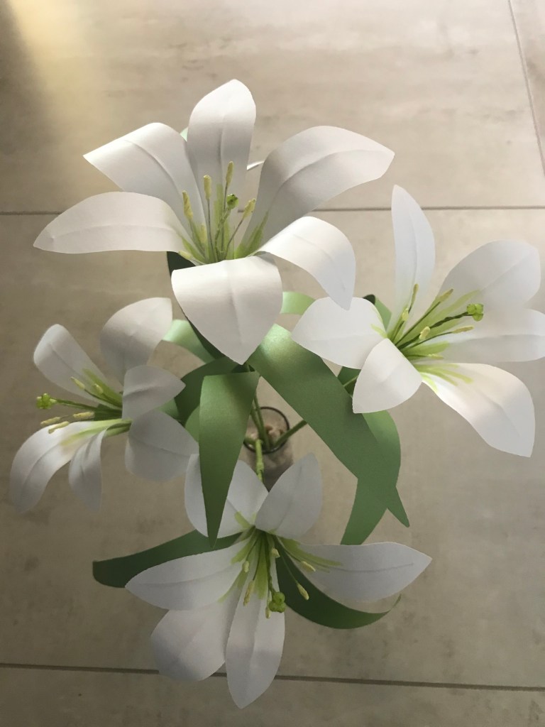 Easter Lilies made with glossy, text-weight paper: