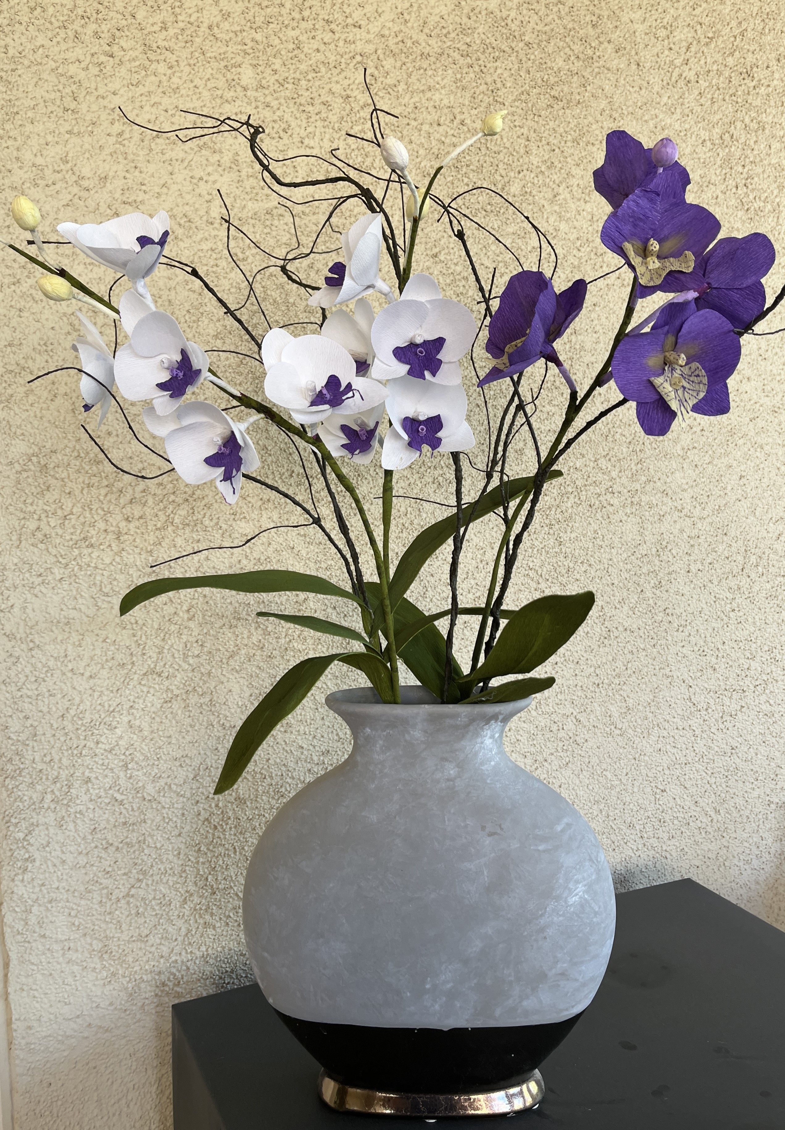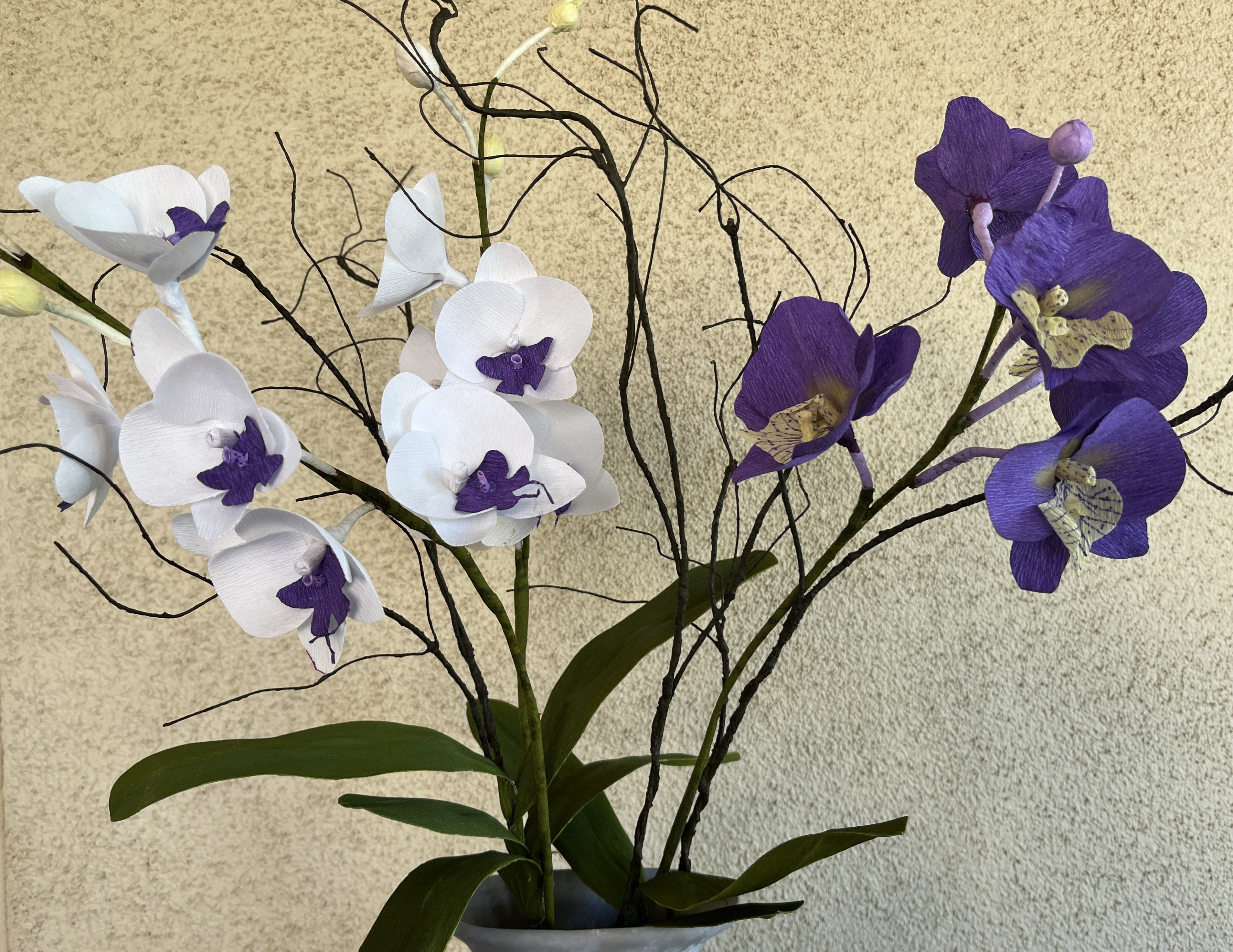 Orchid and Alstroemeria. Crepe paper.