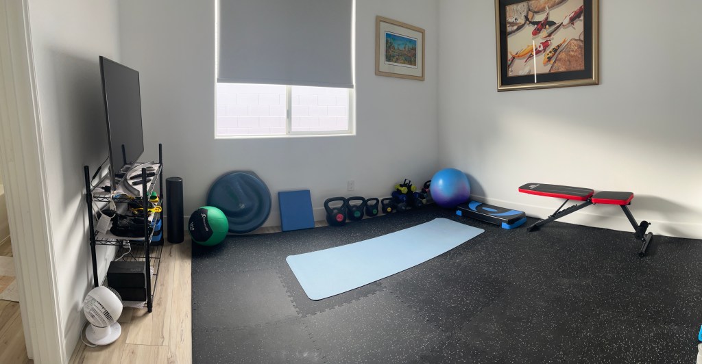 My workout room is mostly done. I need to put a mirror up on the wall with the carp picture. It was a pleasure to start really using it last week.